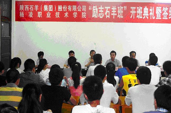 会上,杨凌职业技术学院动物工程学院王书记对第二届“励志石羊班”的开班表示热烈祝贺,对石羊集团给予学校教学改革的支持表示感谢,对校企合作所取得的成绩做了充分肯定,对加入订单班的学生提出了几点要求。周博宁总经理简要介绍了石羊集团情况,对加入石羊班的同学表示欢迎,勉励同学们要珍惜机会,努力学习,早日成才。