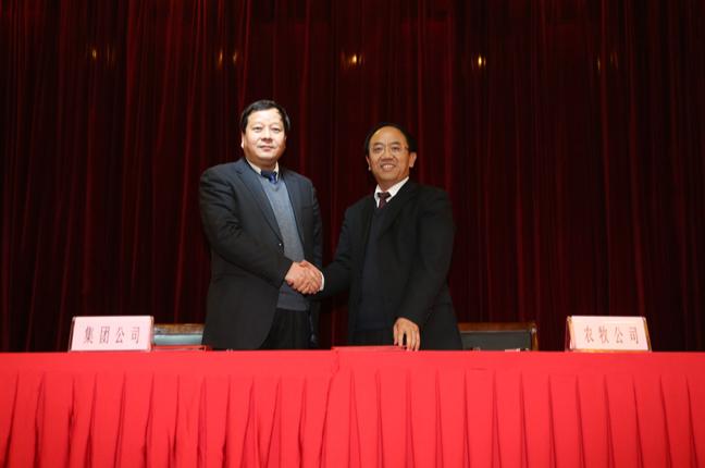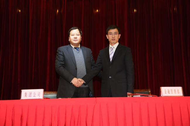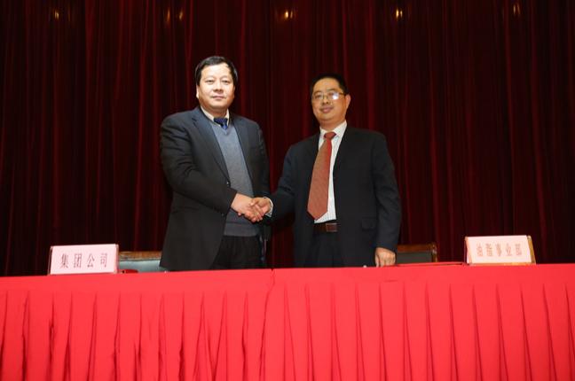 以上领导发言结束后,是"2014年度工作目标经营责任确认书"签字仪式。集团总裁常青山先生先后与副总裁兼农牧产业总经理韩春元先生、油脂产业总经理孔红民先生、汇邦地产总经理刘恒先生、金融产业何新全先生签约。