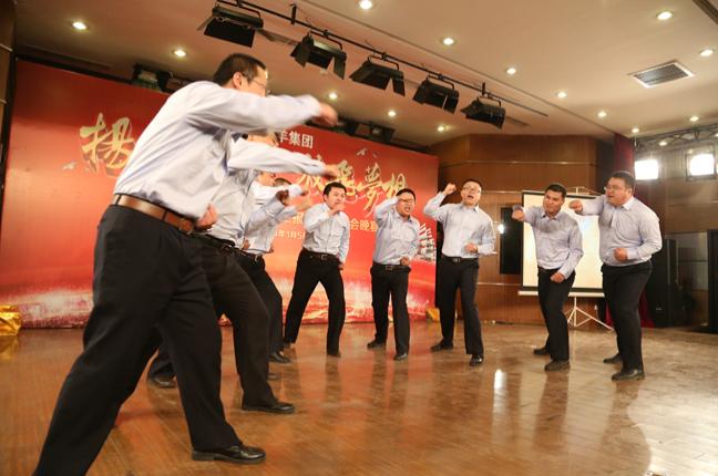 2013年度是石羊集团企业文化年,此次工作会议特意在晚宴前增加了“事业与梦想”演讲和团队风采展示环节。此环节由总裁助理赵超与集团项目投资部总经理傅巧艳主持,各个产业选派精英管理人员代表参加。金融、油脂、农牧、地产用相同的演艺元素展示各自不同的团队风采和演讲者的魅力,现场欢快、热烈、团结、激情的气氛感染了现场的每一个人,彻底引爆了全场的气氛!