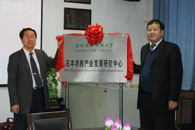 4月2日下午,石羊集团与西北农林科技大学动物科技学院在动科学院一楼会议室举行“西北农林科技大学-石羊农牧产业发展研究中心”揭牌仪式,集团总裁常青山、副总裁兼农牧产业总经理韩春元、饲料事业部总经理李鹏华、西北农林科技大学校长助理、国家“千人计划”入选者赵辛教授、教务处处长陈玉林教授、学校科研处孙楠副处长、动科学院院长姚军虎教授、书记闫祖书老师、呼天明副院长、孙超副院长等20多名专家学者参加了揭牌仪式。揭牌仪式由闫祖书书记主持。