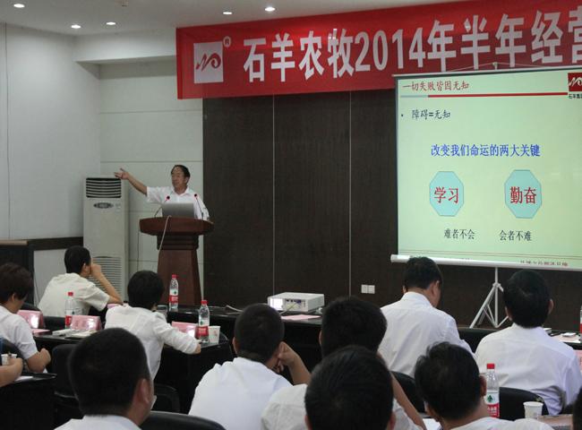 7月3日,石羊集团农牧产业2014年上半年经营检讨会在临潼隆重召开。集团总裁常青山、集团副总裁兼农牧公司总经理韩春元出席会议,各事业部总经理、各线路负责人、各子分公司副总经理以上人员及财务线路近百人参加会议。
