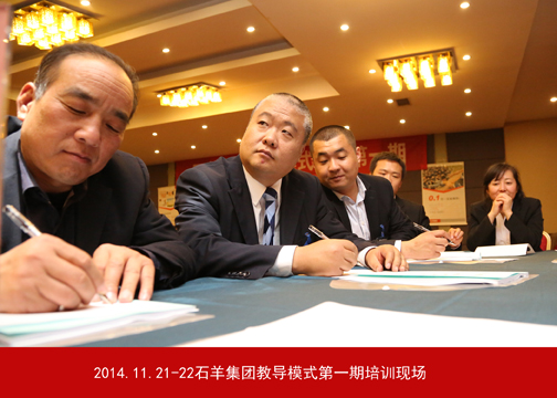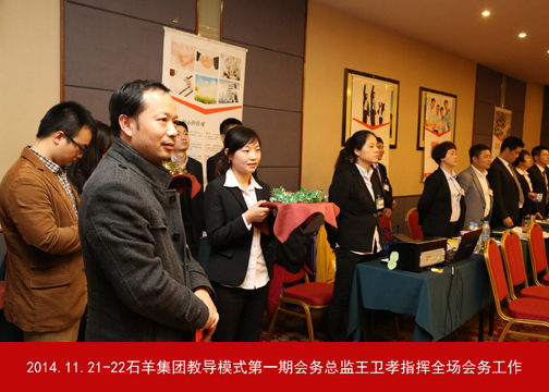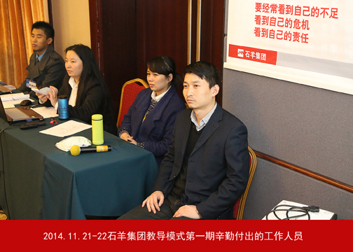 11月20日—22日,石羊集团教导培训第一期在未央湖畔的度假酒店成功举行。按集团董事长魏存成在2014年第三季度经营检讨会上的部署,本次活动旨在向各事业部主管级以上人员传达、推广教导模式。此次培训得到了大量教导家人的支持,现场邀请到师道书院汪蓉老师,同时还感召到王亚妮、丘炜等企业家人作为教导员。此次培训学员分别来自汇邦地产、金融、农牧、大食品及外部学员共计75人,培训导师、教导团和小天使人员30余人。
