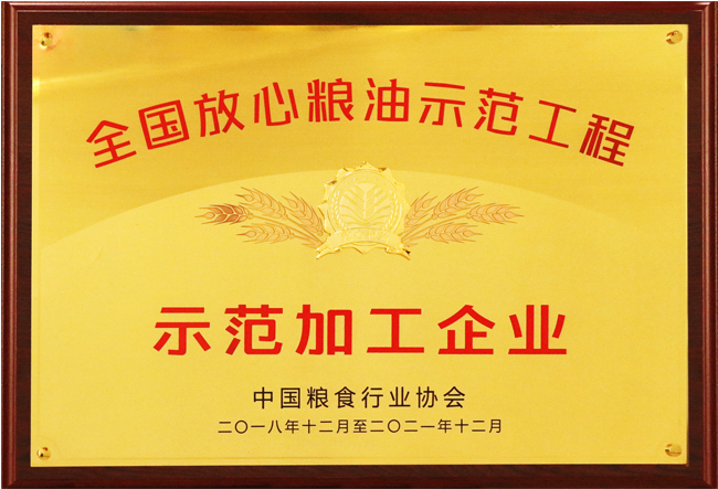 2018年12月-2021年12月中国粮食行业协会授予“全国放心粮油示范工程示范加工企业”