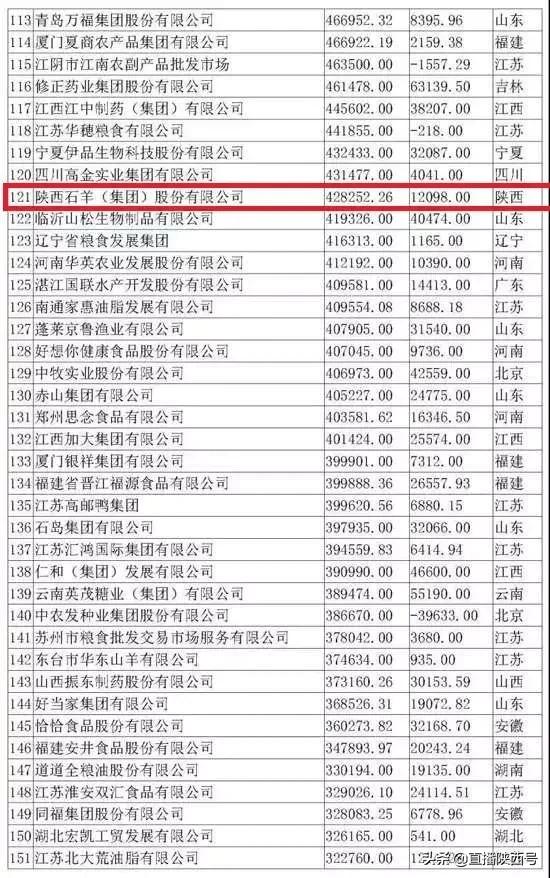 陕西上榜的七家企业中,陕西石羊集团排名最高,位居第121位。