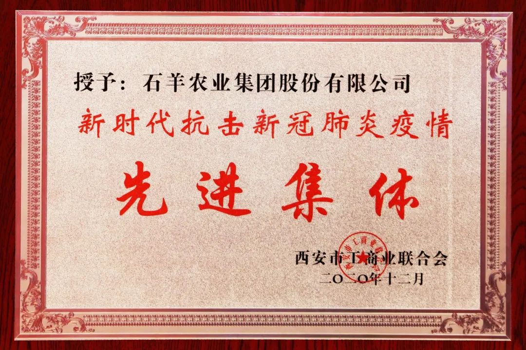 同日,西安市工商业联合会成立70周年纪念大会暨十四届四次执委会议上传来喜报,石羊集团被授予新时代抗击新冠肺炎疫情先进集体和新时代助力民生发展先进集体殊荣。