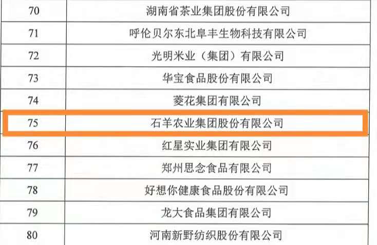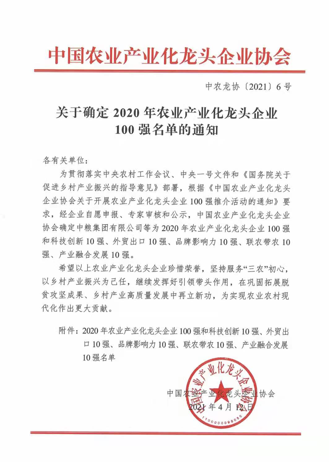 4月25日,2020年农业产业化龙头企业百强推介暨百强国龙进贵州活动举行。活动公布了2020年农业产业化龙头企业100强名单。石羊集团获评2020年农业产业化龙头企业100强,荣列百强榜单第75位。