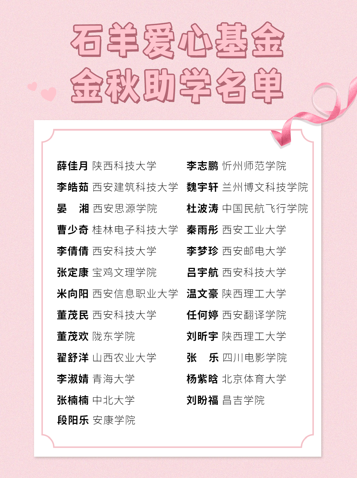 一年一度的石羊爱心基金“金秋助学”活动在西安邦淇公司拉开帷幕,经爱心基金管理委员会筛选审核,本年度为25名困难员工子女及上下游困难客户子女发放助学金101000元。