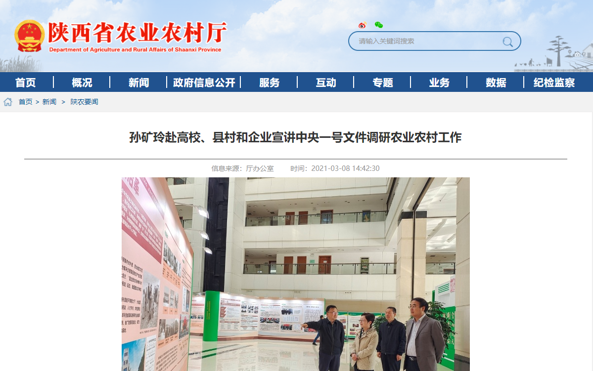 3月3日-5日,省委农办主任、省农业农村厅厅长孙矿玲先后赴西北农林科技大学、西安市长安区和陕西粮农集团、石羊集团开展“学政策、搞调研、抓落实、促振兴”活动,宣讲中央一号文件、调研农业农村工作。西北农林科技大学党委书记李兴旺出席有关活动,西安市副市长贠笑冬,省委农办副主任、省农业农村厅副厅长陈文参加有关调研。