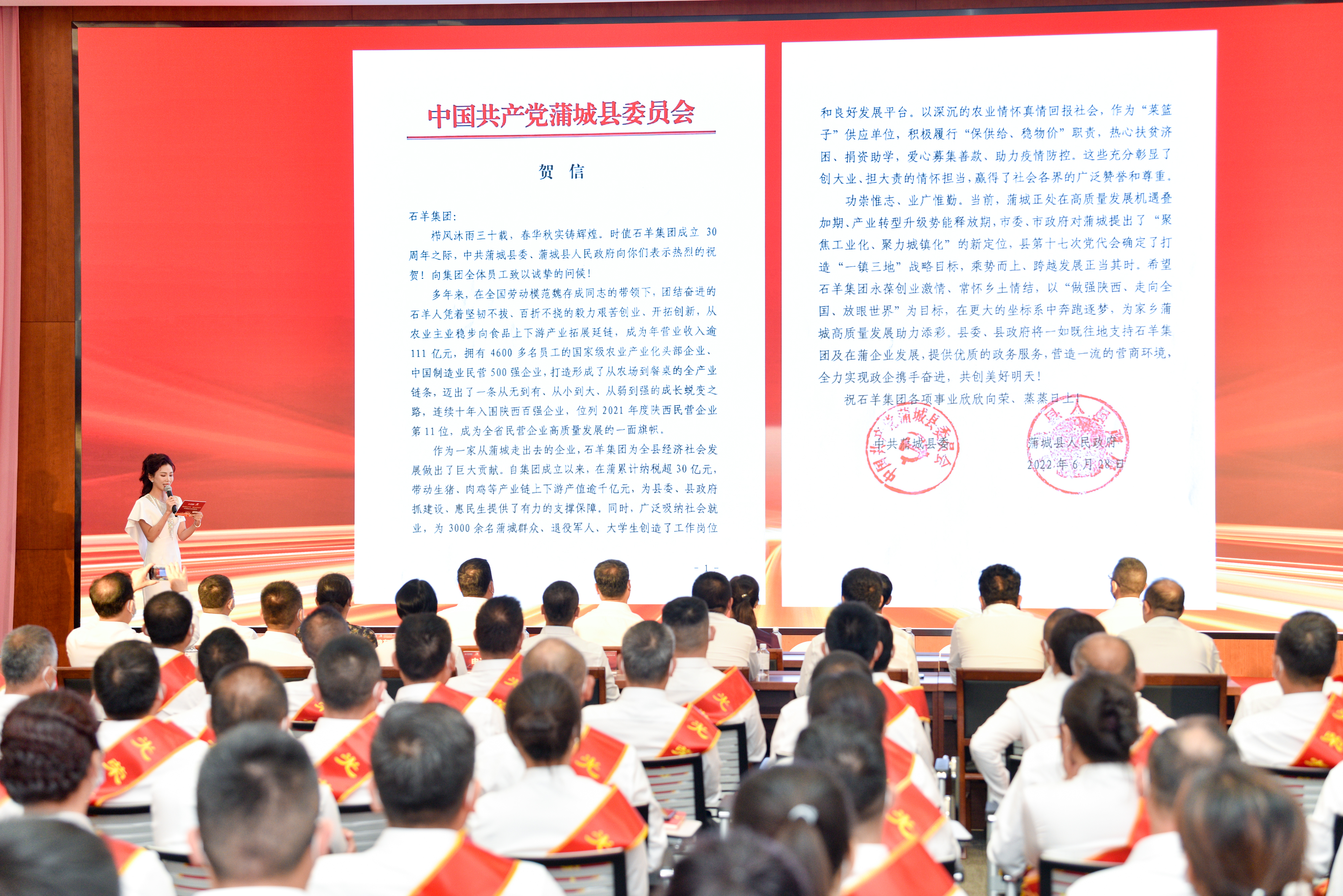 接下来,全体参会人员共同观看了石羊集团宣传片,共同聆听了来自社会各界发来的生日祝福。党委书记、董事长魏存成做了专题报告,报告回顾了石羊30年来的发展历程、对在岗20年以上的128名员工逐一感谢,以及对集团未来发展提出了新的战略布局。