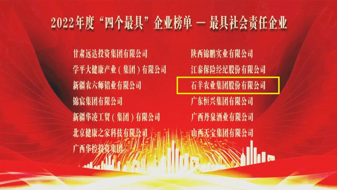 此次荣获2022年度“最具社会责任企业”殊荣,再次彰显了石羊集团30余年来始终坚守农业报国、产业报国,坚定做好食品、为客户创造价值的同时,积极履行社会责任,实现企业高质量发展。