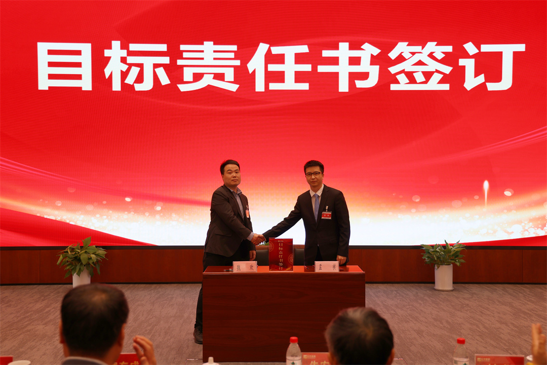 直管产业与业务部门负责人签订2023年度目标责任书。