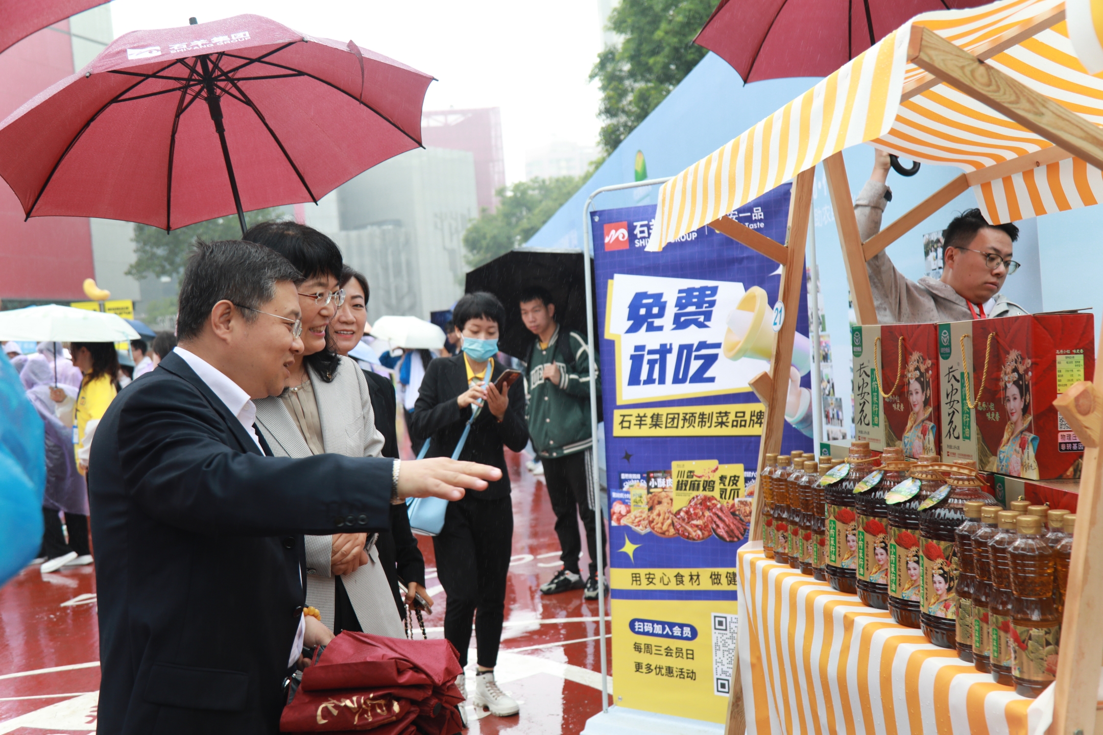 石羊集团携旗下长安花粮油、石羊安心肉、长安一品等产业主打产品亮相活动现场。