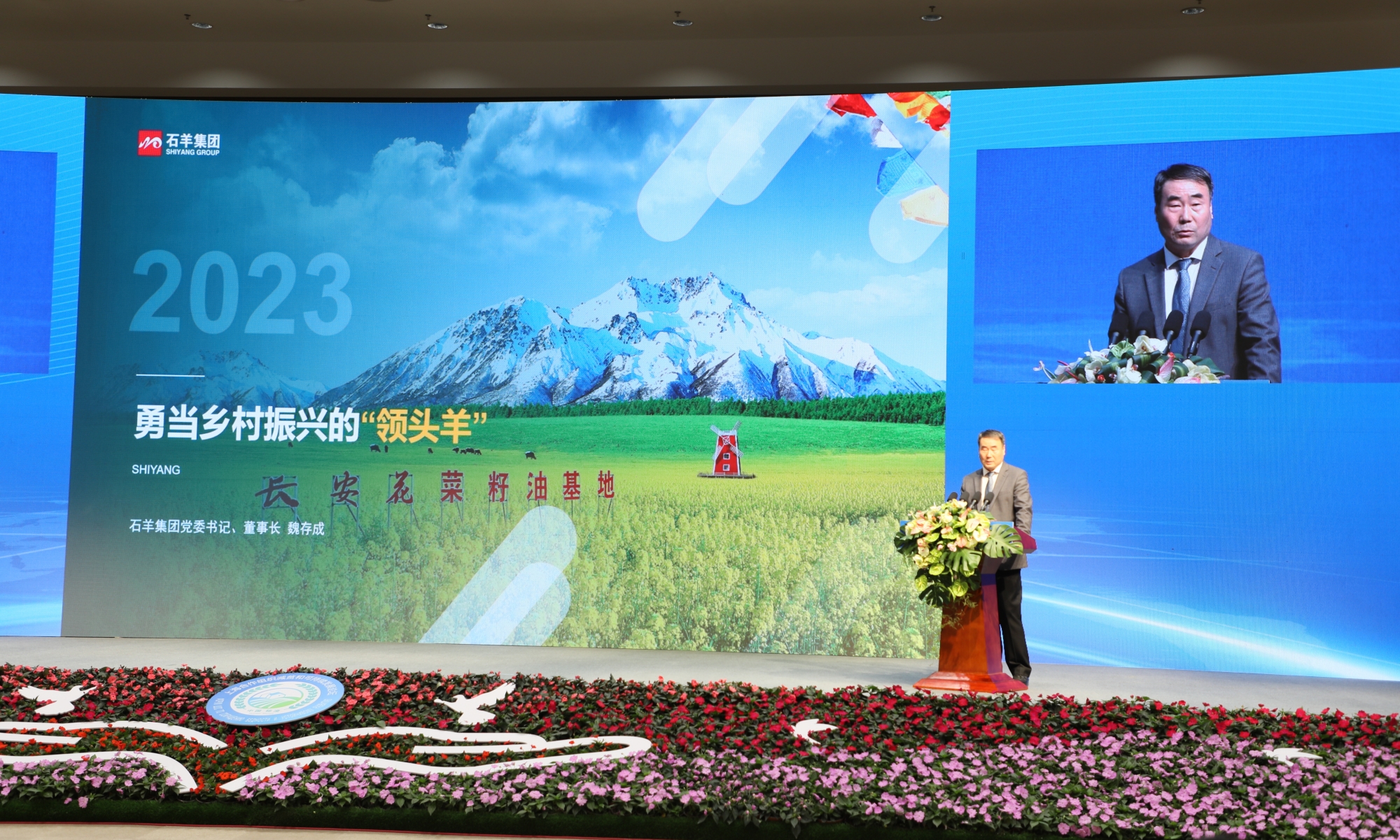 魏存成简要介绍了石羊集团始终不忘带领家乡人过上好日子的初心使命,31年如一日,坚持以“提供绿色产品,共创美好生活”为企业使命,将“安心石羊肉、绿色长安花、美味长安一品”的品质作为永恒发展基石。积极发挥全产业链优势,坚持科技兴农,推动乡村产业发展壮大。多年来,已持续创造10000多个岗位,带动产值10多亿元,让“三农”更多分享产业增值收益。