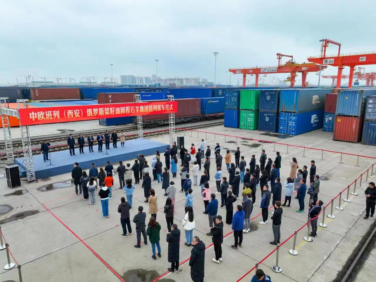 2023年4月24日,中欧班列长安号俄罗斯回程菜籽油石羊集团专列顺利抵达西安国际港站。
