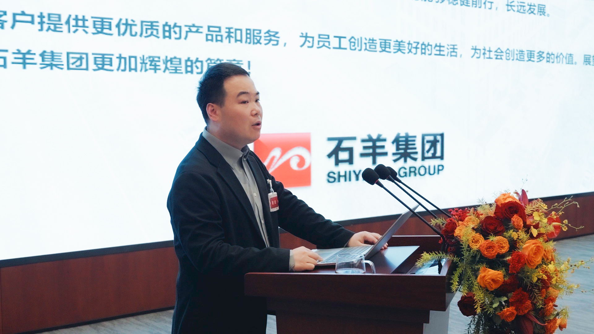集团党委书记、董事长魏存成在会上讲话,他首先对全体石羊人过去一年的辛勤付出表示感谢,指出集团要继续坚持专业、专注、领先,稳健发展,风险可控的理念。以顾客为中心,为顾客创造价值。同时,他还强调了在当前复杂的经济形势下,虽然我们取得了较好成绩,但必须清醒认识到当前经济形势和市场环境,保持谦虚,加强执行力,向优秀企业学习。当前形势下,行业产能过剩,同质化竞争激烈,消费端对品质和便利性要求提高。国家政策鼓励消费、扩大内需,国际形势复杂多变。面对这些挑战,我们需顺势而为,认识到成功是勤奋和时代趋势的结合。